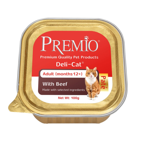 פרימיו מעדן לחתול עם בקר פטה 100 גרם בקופסה